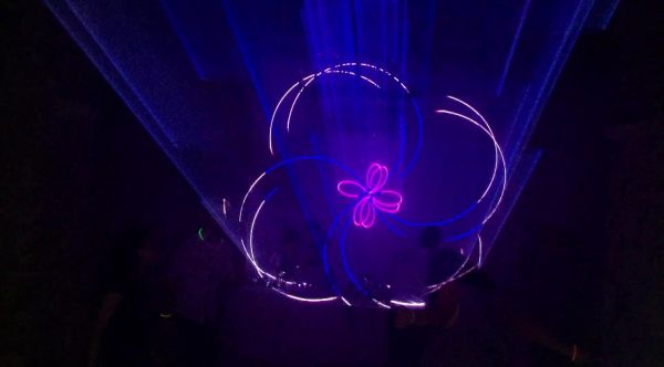 Lasers 3,3 watts gérés par informatique qui donnent la possibilité d'inscrire prénoms et autres textes, des totems éclairés avec lycra blancs, une machine dernière génération (sans azote) à fumée lourde au sol, des arbustes bambous, des objets de décoration, des yuccas et pots lumineux, air cônes, une machine à bulles.