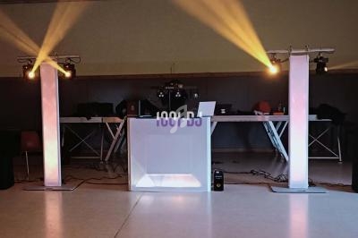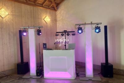 Notre prestation inclut un matériel de base adaptable selon la formule choisie, comprenant une régie DJ avec 2 platines vinyles Reloop, une table de mixage Pioneer, un micro et un PC, un système de sonorisation avec deux colonnes de 1000 W rms chacune, un éclairage complet avec un système 4 en 1 JB Système, une barre LED, deux Stinger II, deux projecteurs LED, une machine à brouillard, ainsi que le mobilier et accessoires tels qu'un stand DJ, deux totems et divers accessoires.