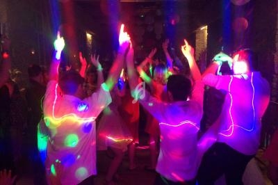 Bracelets et colliers fluorescents.