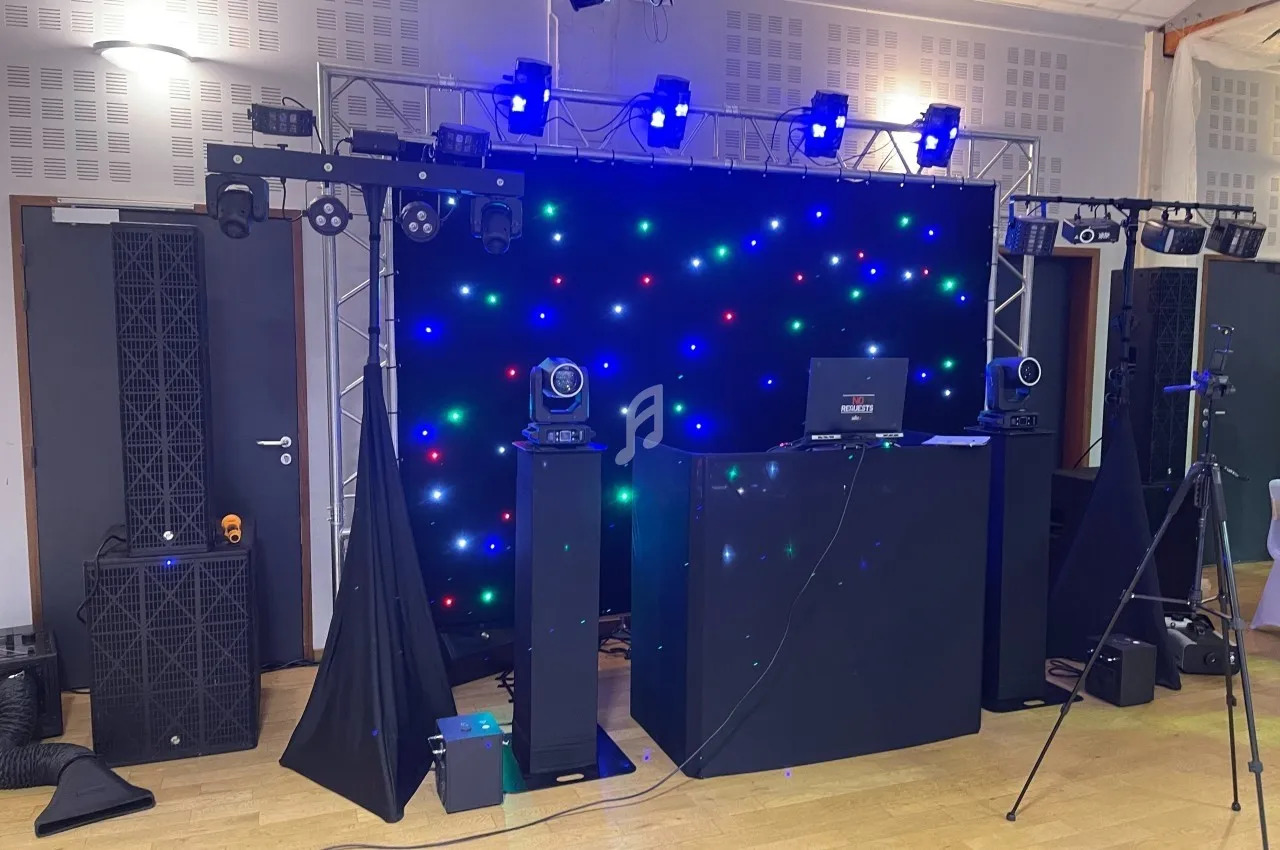 à partir de 360 € pour animation DJ + sono + éclairage + effets.