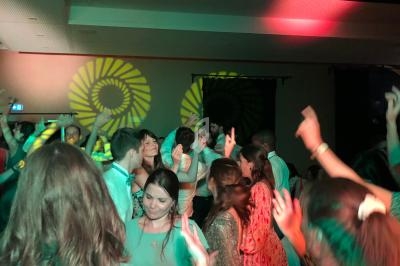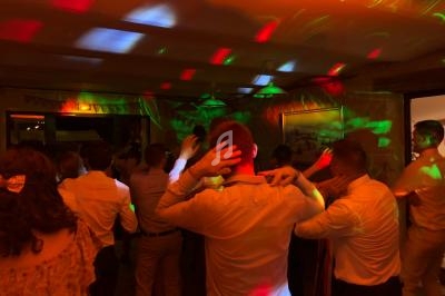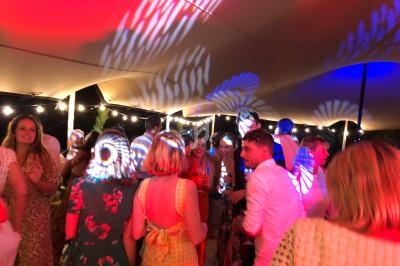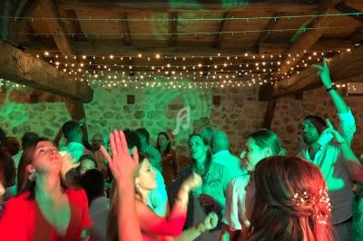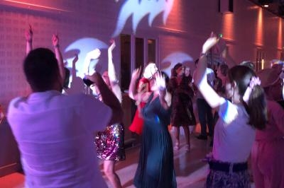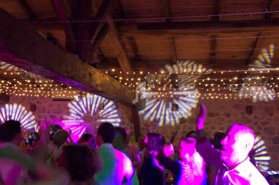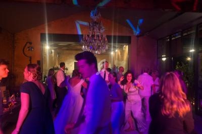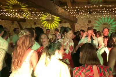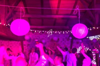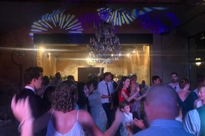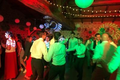 Un dancefloor décoré (lumières, laser, sono pour le cocktail), lumières autonomes pour le repas, micros sans fil.
