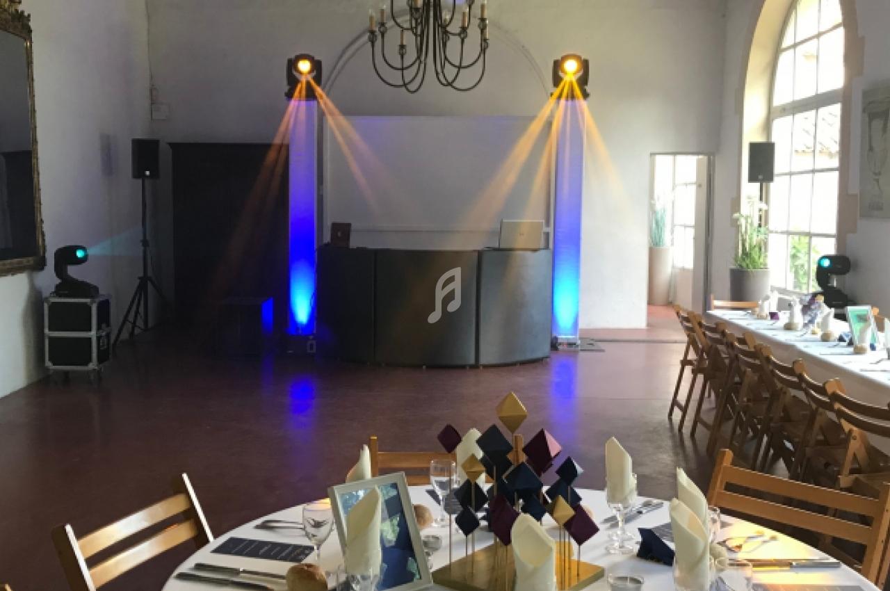 - Mise en lumière du lieu de réception, sonorisation du vin d'honneur et de la piste de danse.